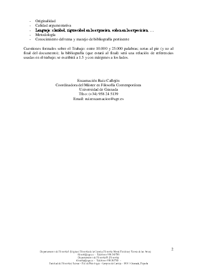Doble titulación de máster: Máster en Filosofía Contemporánea: I BARI01