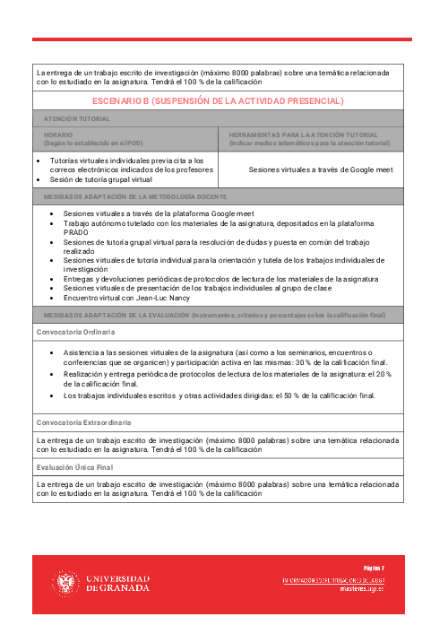 Doble titulación de máster: Máster en Filosofía Contemporánea: I BARI01