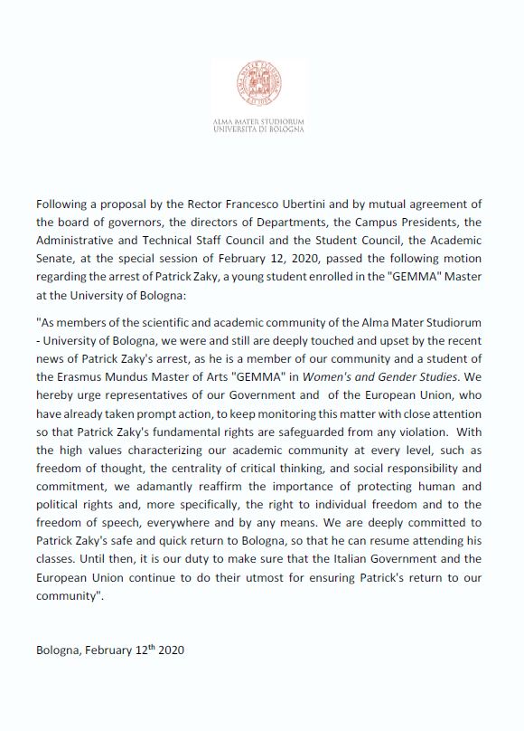 Motion Patrick Zaky_student University of Bologna